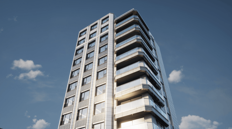 外立面上,遵循经典三段式构图,并用金属、石材与铝板搭配出丰富的立体层次。