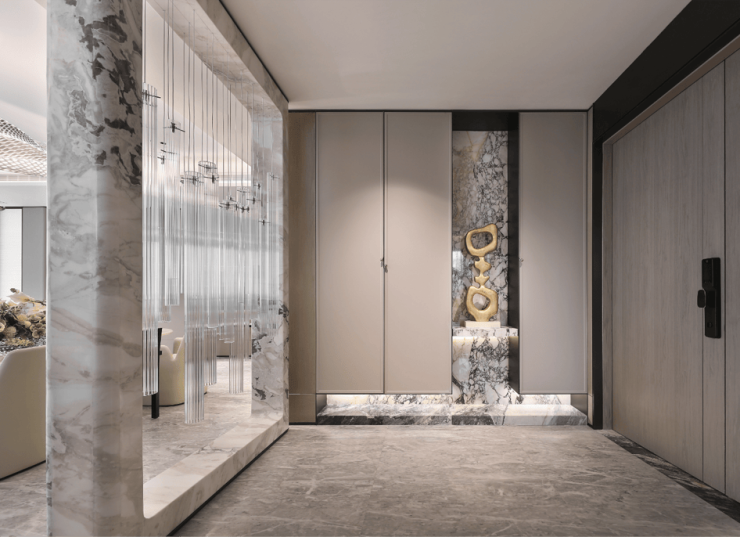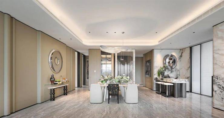 项目以未来科技感的围合式布局融于城市,形成私密花园,营造朗阔的社区空间。大面积玻璃、顶层灯塔、建筑体块约45°设计、一体化视窗,成为面向城市的艺术品,并以约270°寰境将世界潮尽展窗前