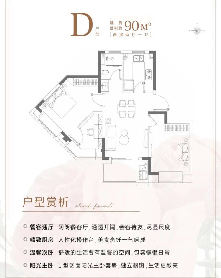 D户型 建面约90㎡2房