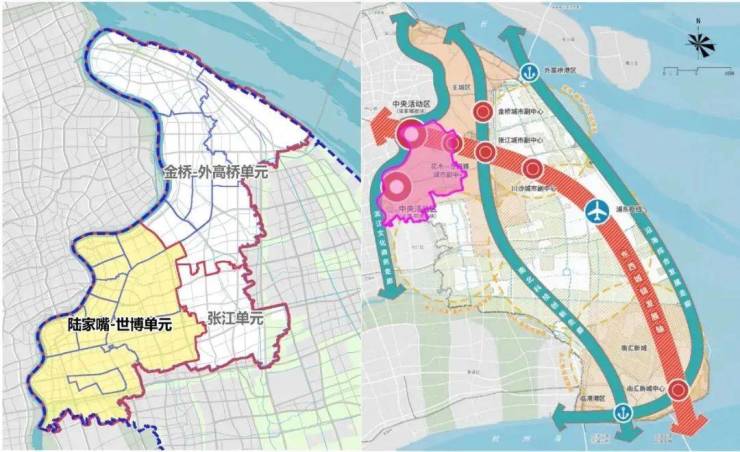 陆家嘴-世博单元包括陆家嘴和世博-前滩,这两块属于上海的中央活动区,还包括花木-龙阳路城市副中心,以及洋泾、北蔡、三林等热点地区。