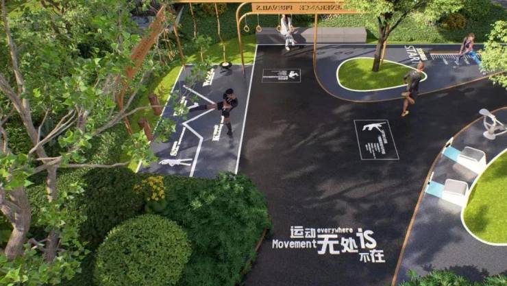 同时通过景观功能创造停留节点,触发更多的停留和遇见的可能性,让社交在自然而然中发生。比如,轻氧阵地、夜光跑道、多龄段儿童游乐区,既满足全龄化运动需要,也形成一个个交汇节点与共享基地,增进邻里交往。