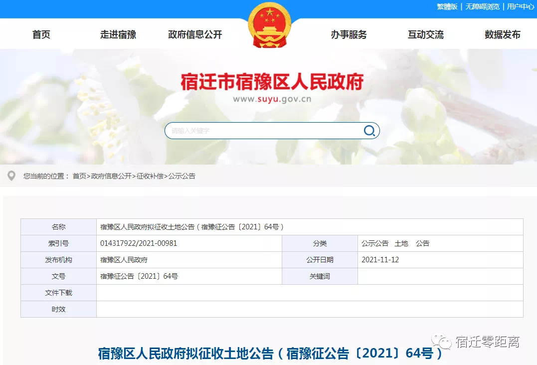 宿豫区人民政府拟征收土地公告(宿豫征公告〔2021〕65号)