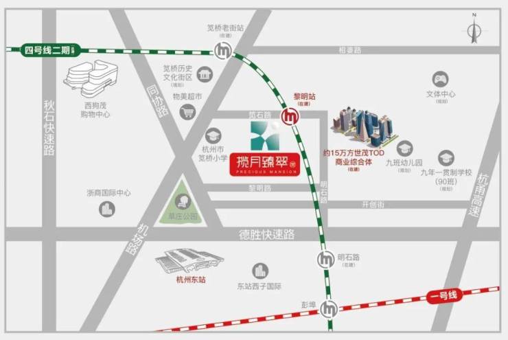 由4号线地铁黎明站(在建)出发,7站直达钱江新城核芯区,协同地铁6号线,可6站抵达江河汇,优越地理位置,引领着杭城未来的发展方向。