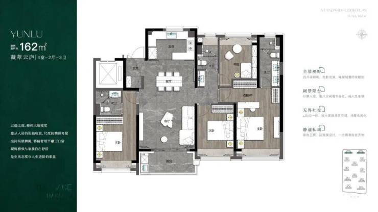 其中大户型是奉贤新城罕见的超级大平层产品,四期核心户型图如下👇