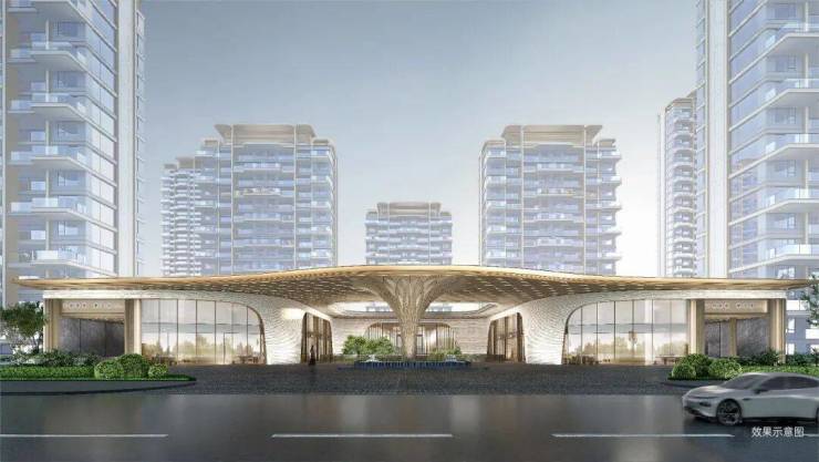 近110米城市旗舰门厅,约7.8米奢阔高度,专属环岛落客区,构建一体化城市界面,给予无限的尊崇感和仪式感。
