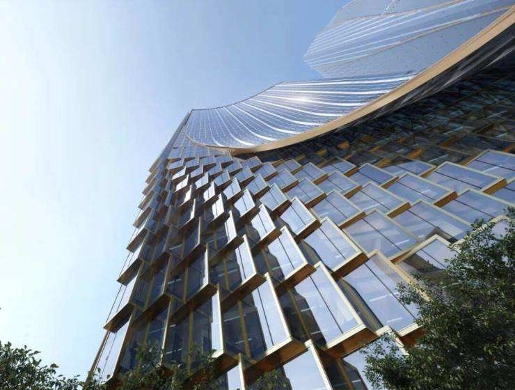创始人Ben和Hannes联手,将建筑化作曲线柔美的“丝绸”:巨型天幕从立面顺流而下,在低区环绕4幢塔楼优美展开,如裙袂飞扬。
