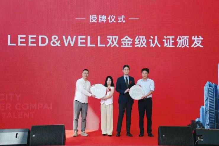 现场,还举行了授牌仪式。EIC超级创新城项目同时荣获LEED&WELL社区双金级认证,展现了项目在自然环保、可持续发展、ESG实践等领域取得的成就。