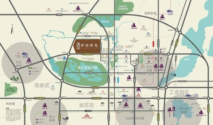毗邻约10.3平方公里虎丘湿地公园生态腹地,成就苏州主城内罕有的湿地住区。感受大自然的天然氧吧,实现家门口的微旅度假。