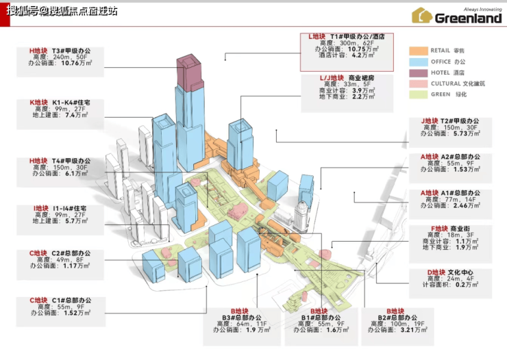 其中4栋超高层,分别为300米、240米以及2栋150米塔楼组成。
