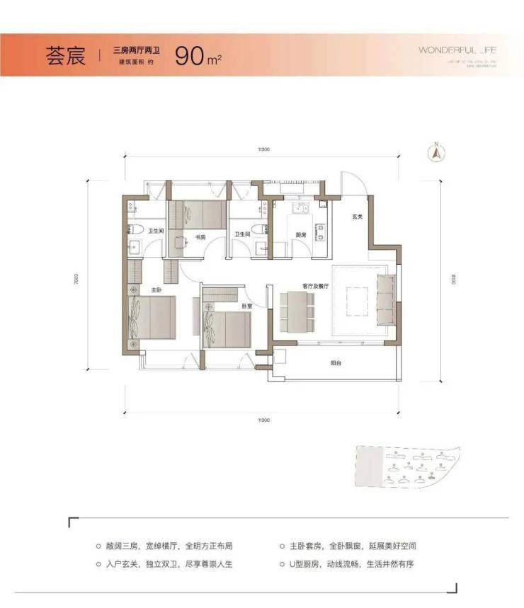 户型包括约88-119平高层(含毛坯/精装),房地联动价3.65万元/平方米,户型图如下: