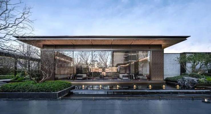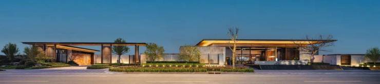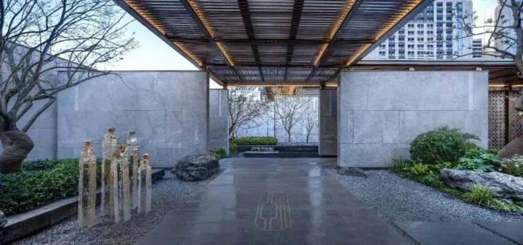 保利·海上瑧悦的建筑风格融合了东方宅邸的大气与现代建筑的柔美,采用大象灰石材搭配咖色系金属,以金镶玉为原型,提取其“曲”的形和白金配色应用到塔楼立面上,形成项目特色的立面效果,彰显出项目的温和雅丽与尊贵典雅。在园林景观上,项目从规划上打造东方仪式感,主入口庭院结合建筑与室内打造“一园三堂”的空间布局,营造出“三重居住感受+五重归家体系+九境园林体系”,尽显海上瑧悦产品礼序、东方意境和雅趣生活的特质。