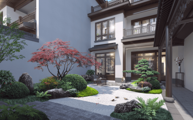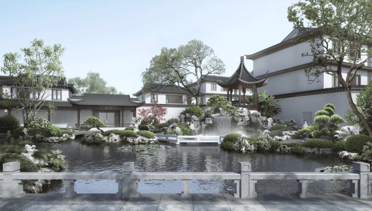 中式合院作为当代至为贵重的人居形制,往往于精微之处,方见品质真章,极度考验大师们对建筑细节的把控能力。在紫香缘的建筑设计中,苏州古建坚持“古韵新颜”理念,将传统盛唐建筑风格予以提纯,融入现代简约美学精神。
