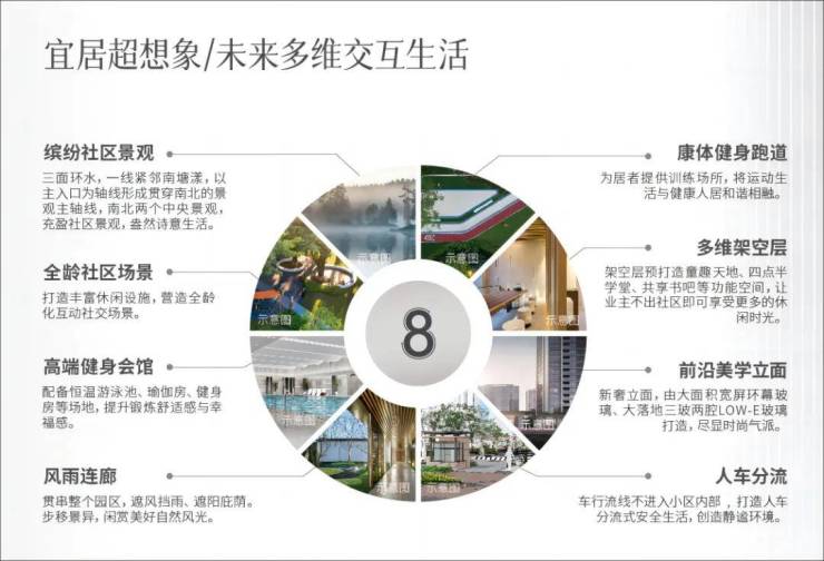 交通场景:高效快捷,社区遵循人车分流设计,规划未来社区巴士、礼仪连廊、智慧物流等新型交通方式。