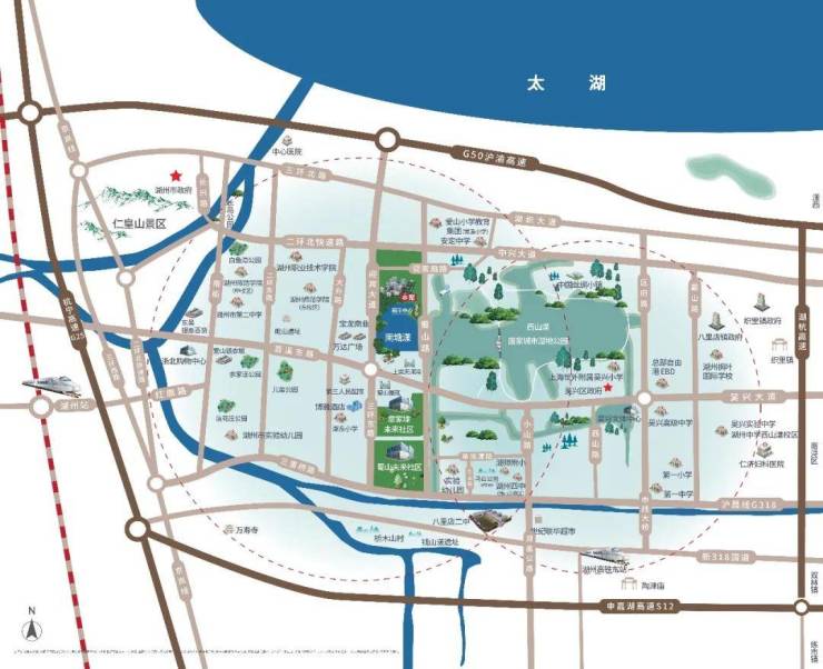 【无忧书香学府】:幼儿园、湖师附小(西山漾校区)、湖州四中(西山漾校区)、安定中学等优质教育资源环伺,起航学子未来。