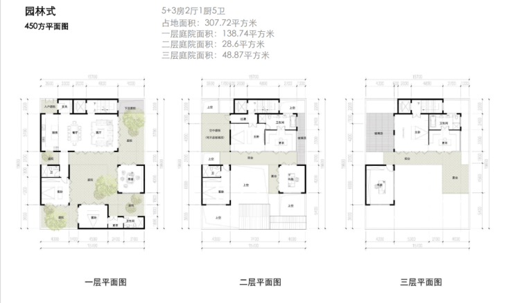 建面约450-700㎡园林式合院;