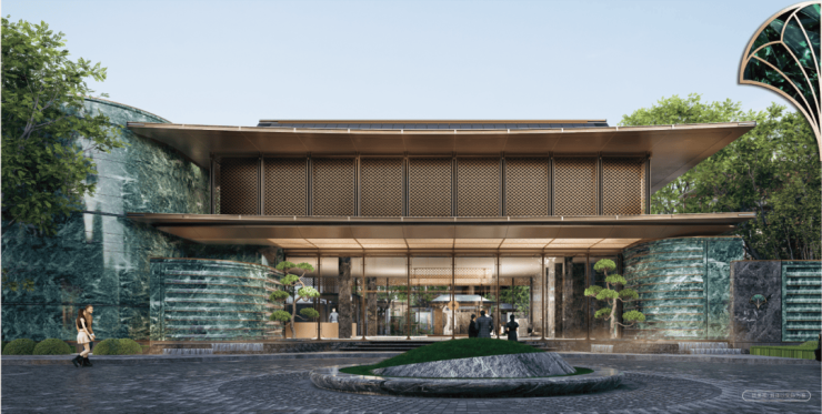 取凤凰祥瑞之意,以经典中式建筑五花马头墙为原型,融入精炼清雅的现代手法,构型如凤起振翅,映见高定美学。