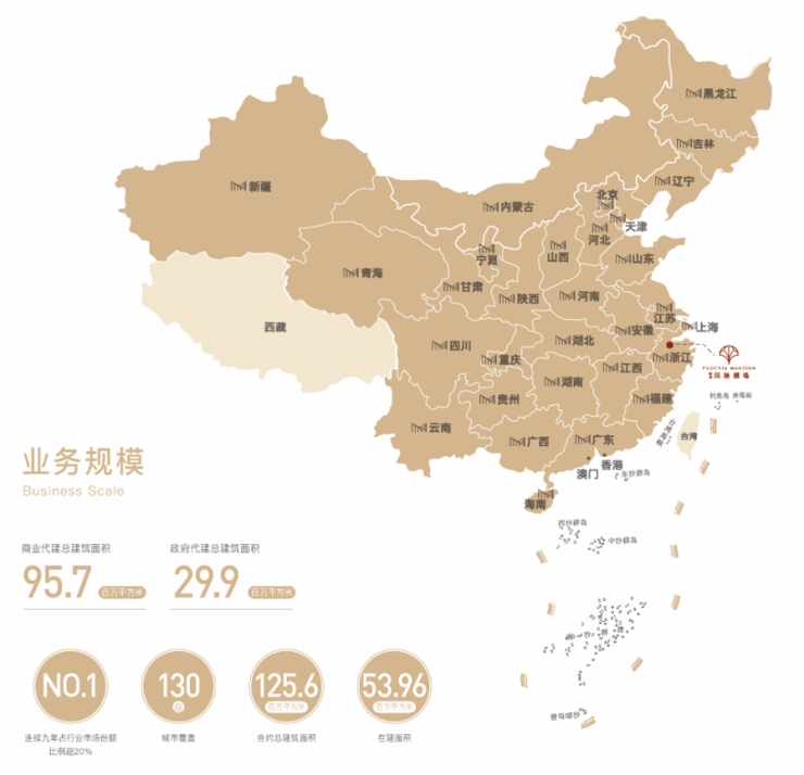 中国房地产轻资产开发模式的先行者、引领者。2020年7月,绿城管理在香港联交所主板上市(股票代码9979.HK),成为中国代建第一股。2025年1-4月,绿城代建项目销售额达233亿元,占总销售额的32.8%,市场份额连续六年稳居行业第一。