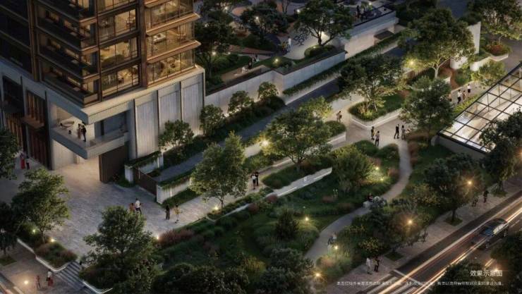 项目有约9米挑高架空层,整体抬高约6米,园区三层立体空间,包含的配套有下沉式庭院、会所(含匹克球馆)、恒温泳池、景观水系、健身房、图书馆以及风雨连廊等等。