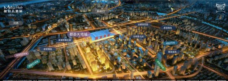 都荟天地写字楼:是南站首个城市综合体项目,项目总占地约10.85万方,总建面积约40.48 万方,ABCD为商业地块,分为办公、商铺和公寓,总建21.88万方,B1栋距离南站地铁出口仅150米。