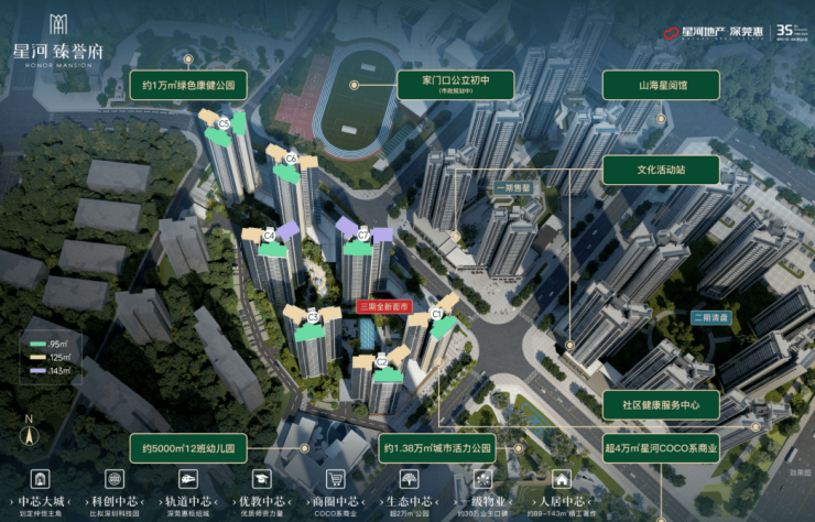 天益城(与项目直线距离约300米)、欢乐海湾(与项目直线距离约700米)、51新天地(与项目直线距离约800米)、项目自带4万㎡星河COCO系商业(规划中),集主题餐饮、亲子教育等多元业态于一体,家门口即享中心繁华生活。