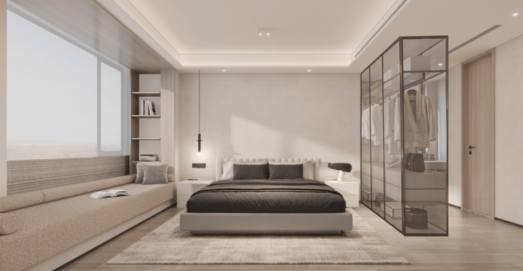 外立面采用甄选材料,以“金属板+大面积三玻两腔LOW-E玻璃”形成轻盈公建化立面,兼顾审美、技艺与品质,大面积三玻两腔玻璃赋予建筑流光镜幕般的澄澈立面,整体更加通透、明亮,映见四季万象。