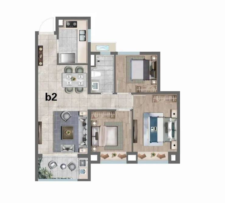 建面约91㎡三房两厅一卫 ,三开间朝南+双朝南卧室带飘窗+动静分离,是一个采光面十足的小3房户型。