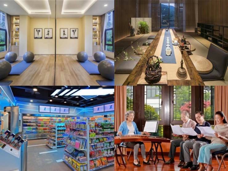 一楼影音室、台球室、健康管理中心、无人值守便利店;二楼书画室、品茗室、邻里会客厅等;三楼健身房、瑜伽室、舞蹈排练房