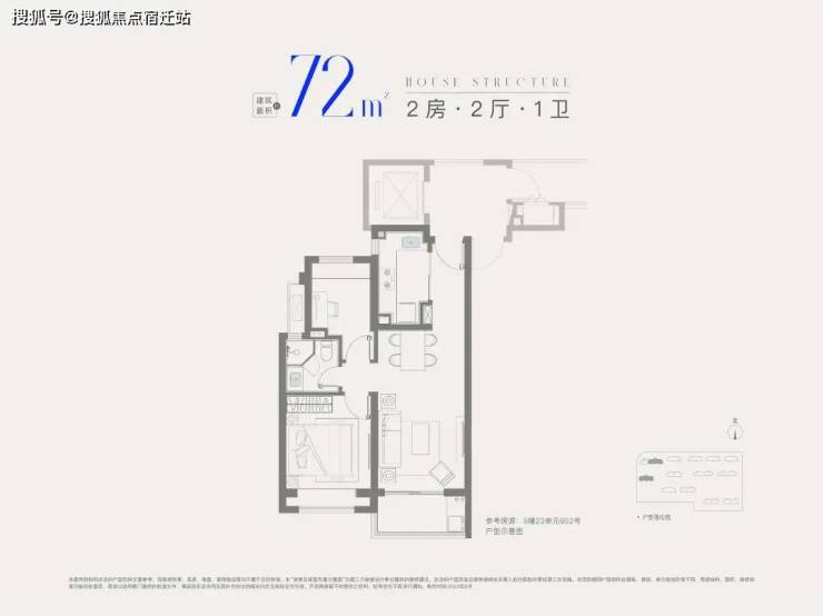 建面约72㎡2房1卫,做到双开间朝南+全卧室带飘窗,总价低至2字头,是刚需上车2房的优质之选。