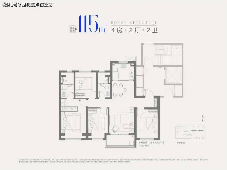建面约115㎡4房2厅2卫,做到了四开间朝南+全卧室带飘窗+主卧套房设计,一步到位的大四房户型。