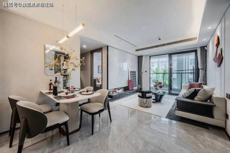 客餐厅的颜值超高,地砖、墙布都在交付标准里,整体风格更为统一,将好看+好用发挥到了极致!
