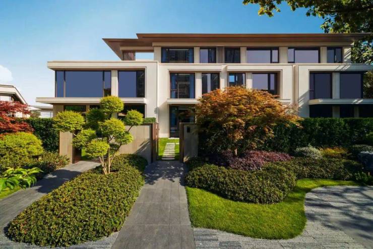越级产品的营造不光在美学馆,更在具象化的产品中落位。滨水著品建筑形态以新宋风形制,呈现出高级的“精致度”,外立面甄选宝格丽酒店同款保加利亚进口维纳多石材,大面积超白玻以及极致窗墙比设计,实现景观价值提升。