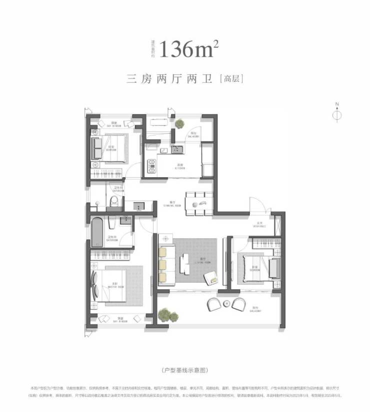 建面约136㎡,三房两厅两卫[高层](售罄)