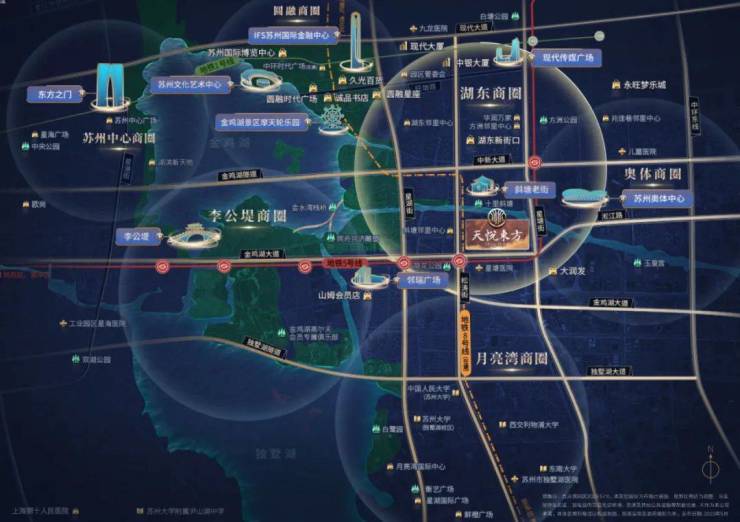 背依斜塘老街时尚街区,紧邻邻里中心,向东约1km(一站地铁)奥体中心,向西约1.5km邻瑞广场山姆超市、向北约2.5km圆融时代广场、久光百货、IFS苏州国际金融中心。沿中新大道与金鸡湖隧道直达苏州中心。