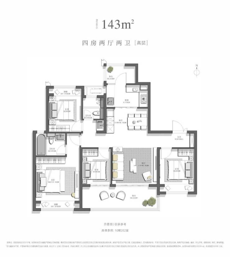 建面约143㎡,四房两厅两卫[高层]
