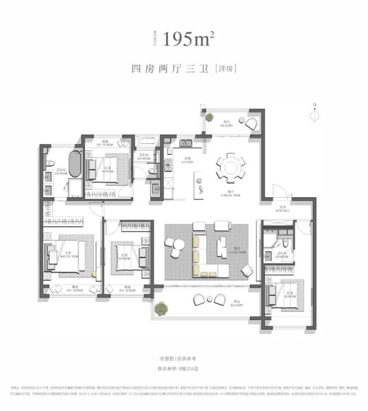 建面约195㎡,四房两厅三卫[洋房](售罄)