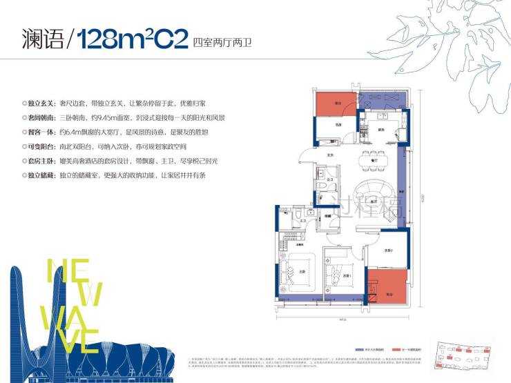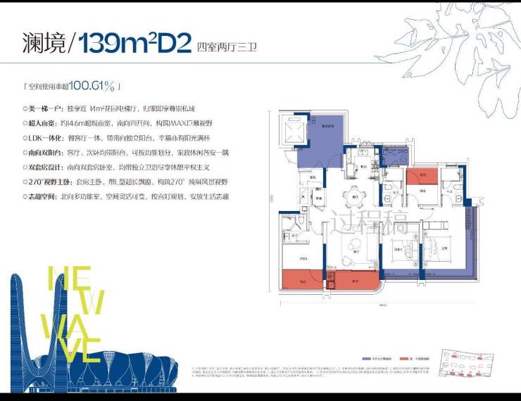 都会新空间的高定设计,空间使用率超90%,户型格局为当代都会生活而来,139方尊享1梯1户、四开间朝南、四室三卫、双套房。