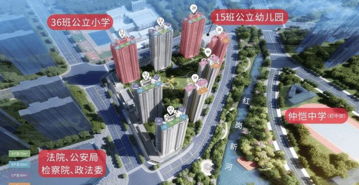 项目配建15班公立幼儿园、36班公立小学,东侧为仲恺中学初中部,西侧为九年一贯制初中,享受一站式教育。
