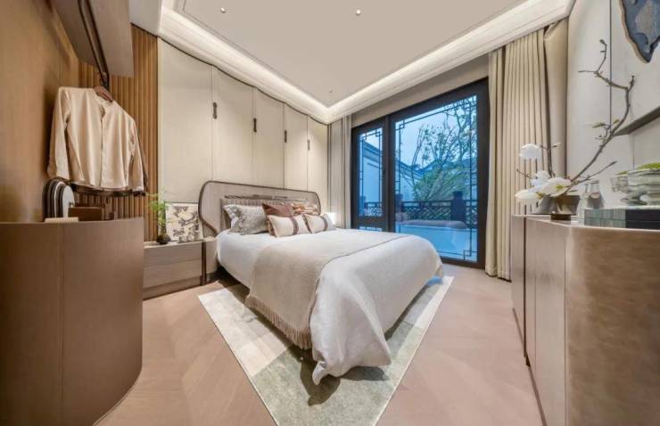 套房式主卧,从起居室到衣帽间,独立卫浴间层层递进,关上房门就是主人的“小世界”。试想一下这场画面:回到家,浴缸里的热水已经放好,于是卸掉一身疲惫,让水温与身体融为一体,闭上眼睛,静静地享受泡浴带来的无限舒适。