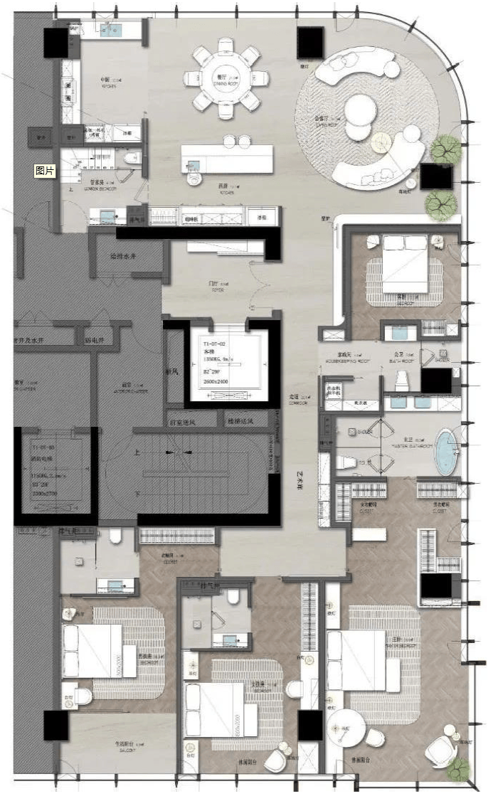 370 ㎡户型:采用大平层设计,分为东「望峯」和西「桃源」两种样板间户型