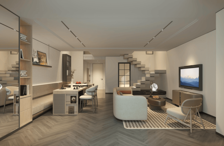 建筑面积约50-96㎡精装双钥匙LOFT约5.6米层高,买一层得两层空间奢享超100%得房率不再为公摊面积焦虑。双钥匙多元户型投资出租的硬通资产,一线品牌精装房源。