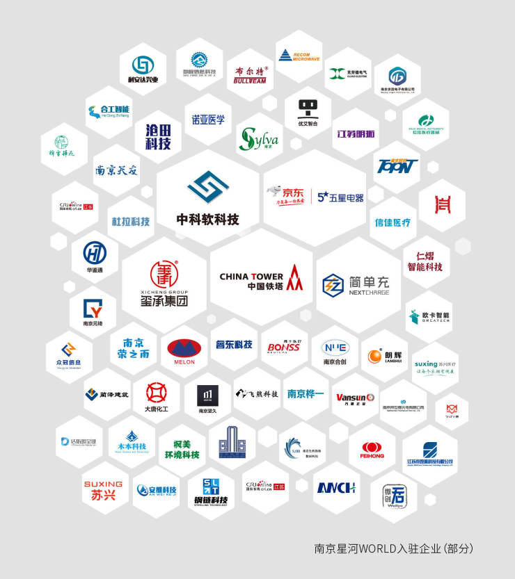 南京星河WORLD现有入驻企业150余家,其中上市企业2家、新型研发机构1家、高新技术企业22家、江苏省科技型中小企业17家、江苏省“专精特新”小巨人企业2家,与名企为邻,尽揽城市优质资源,产业集群效应全面迸发。