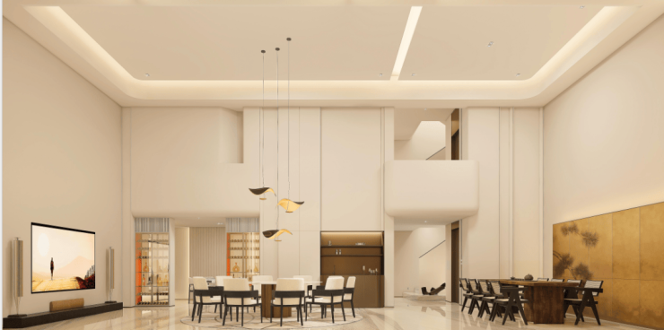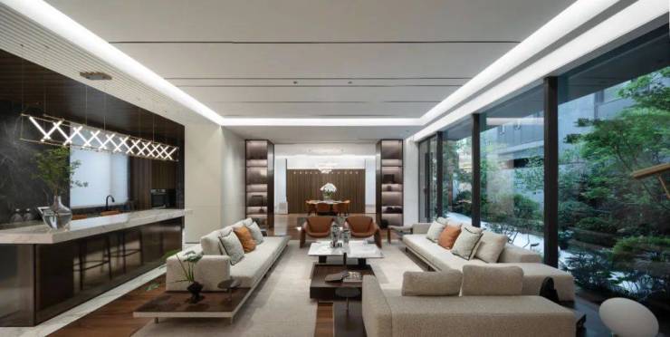 而且,为了凸显超大尺度的空间和窗外的花园式绿植幕墙,西溪印花园独栋搭配了大面积落地窗,加上无柱式设计,空间与光影、风景无界融合,让采光和通透性都保持更佳效果,舒适度比普通院墅或者大平层高很多。