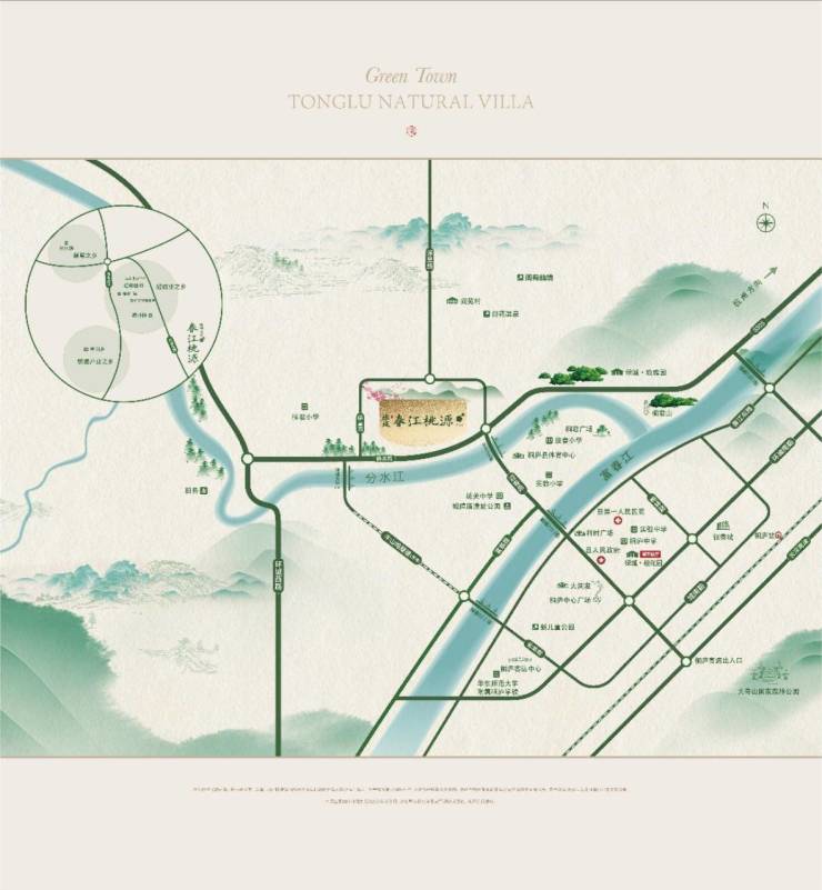 板块优势:江境生态低密院墅级大盘,桐庐北大门核心地块,可快速通达桐庐城区各板块。