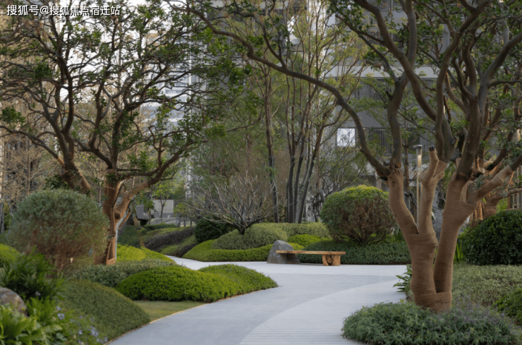 通过错落的植被层次可以看出开发商对园林造景的严苛,对品质的追求,每栋入户大堂门口立着罗汉松+铁冬青,寓意"轻松",希望业主们在这里收获理想、惬意的湖居时光。