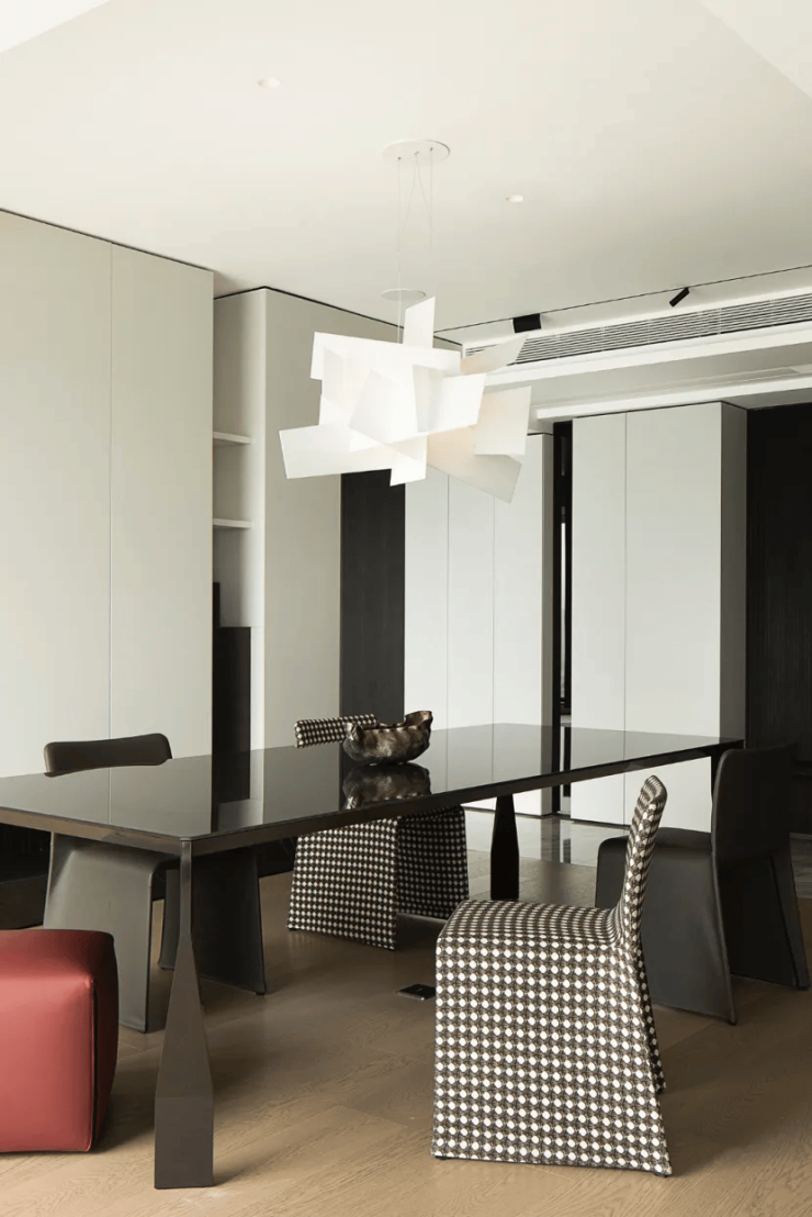 极简主义的设计风格贯穿始终,没有一丝一毫的多余,却充满了细腻的纹理和笔直的线条,将空间划分为一个多功能的空间。