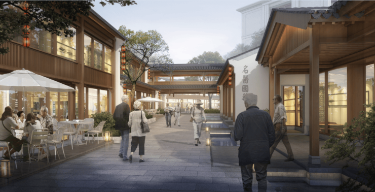规划的小镇商业镇中 配设 国医馆 及 康养公寓 ,并涵盖 家人食堂、生活超市、颐乐学院 等商业业态,提供营销膳食指导、健康体检、远程医疗指导、国药科普等健康服务,构建了以 “衣食住行、颐乐学为、怡康养护” 为核心的服务体系。