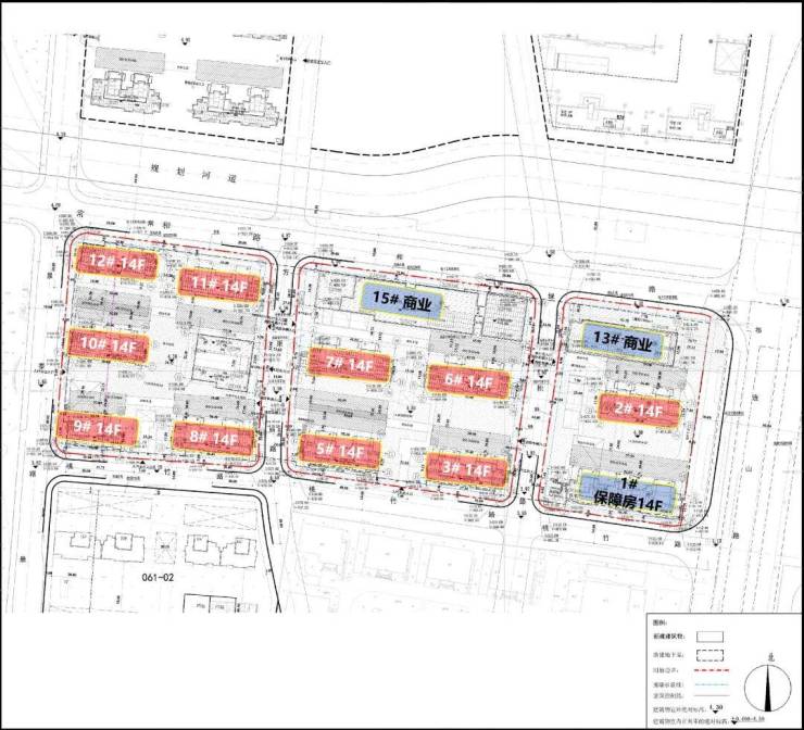 根据项目规划设计方案,拟建11幢14F住宅(含1幢保障房)、以及商业、配套用房等建筑。