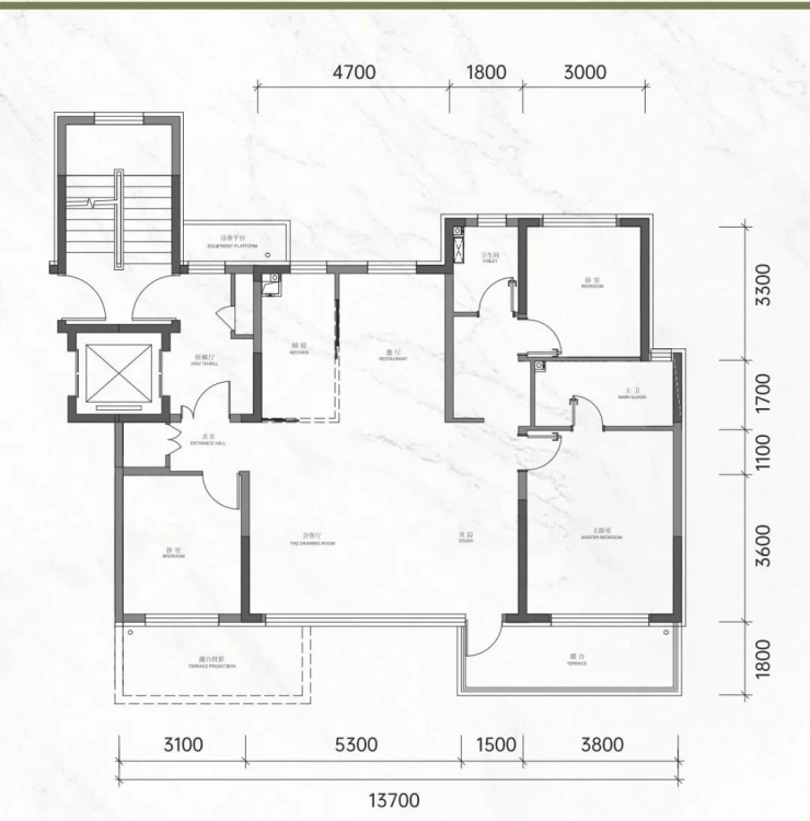 奢华主卧:约3.7米开间、约17.4平奢华主卧,添置更多家具也不会拥挤赠送