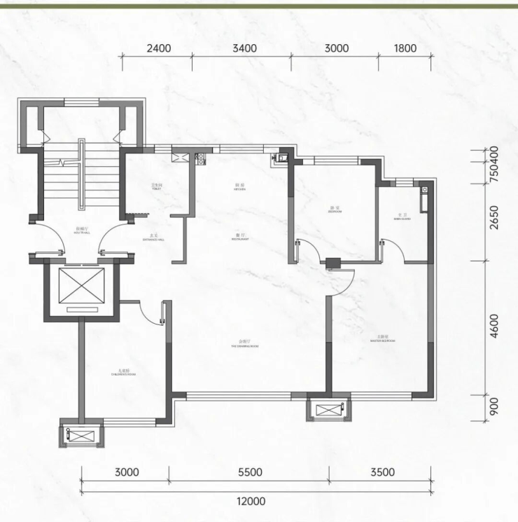 对开门电梯:一梯一户居住感受,赠送约10平电梯前室,私密品质生活