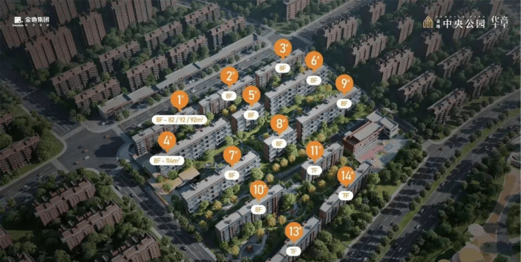 金地·中央公园 | 华章 占地面积4.7万㎡,建筑面积6.5万㎡,整个地块容积率1.2,规划13栋楼,全部为7-8层洋房,共510户,是金州目前唯一一块全部规划为第四代住宅的社区